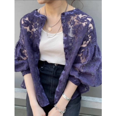 Japanese and Korean summer clothing women's clothing, embroidered lace lantern sleeve shirt, single two-piece, multi button top