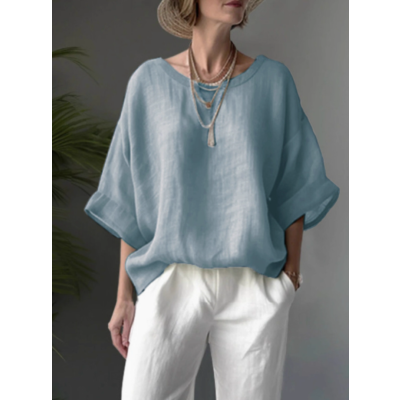 summer new product comfortable casual round neck cotton linen shoulder loose women's plus size shirt top