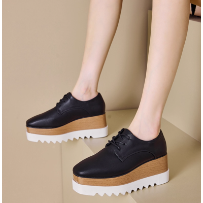 New lace up British style small leather shoes with thick soles, fashionable and casual