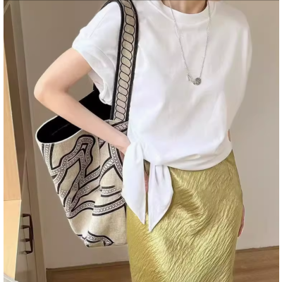 Top Women's Summer 2025 New Short Sleeve Loose Cotton Half Sleeve Round Neck T-shirt Large