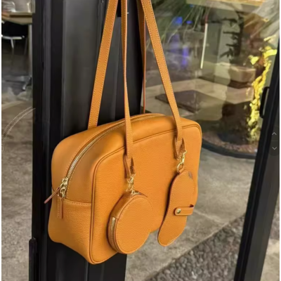 Small niche design bowling bag, top layer cowhide retro high-end handbag, handmade pendant bag, genuine leather women's bag