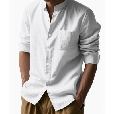 Hooded long sleeved solid color linen shirt, trendy men's thin fit, loose fit, youth fashion cotton linen shirt