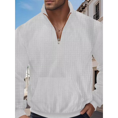 Men's autumn and winter new half zipper long sleeved sweatshirt with stand up collar, loose and versatile men's corduroy sweatshirt