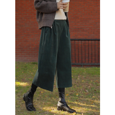 Japanese and Korean corduroy elastic waistband loose slimming wide leg pants autumn cropped pants casual pants